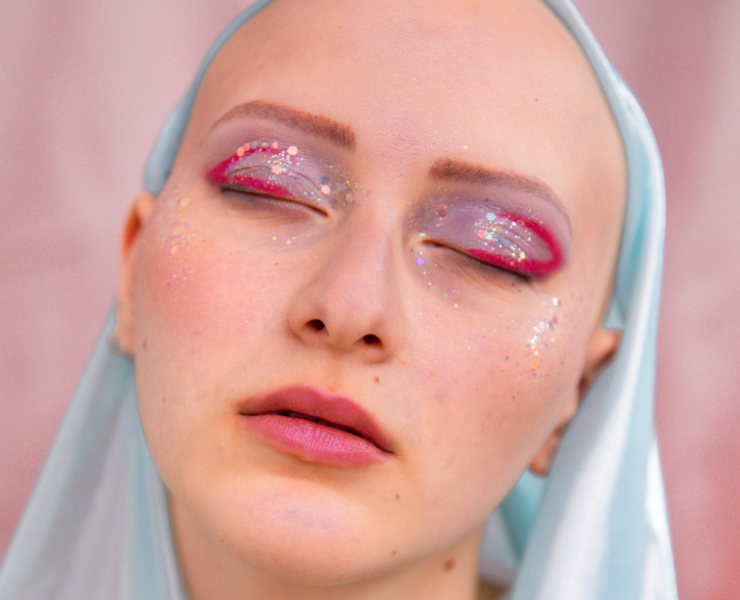 Kevin Scullion captures Gail Porter in a behind-the-scenes photo at Alopecia Magazine UK’s studio.